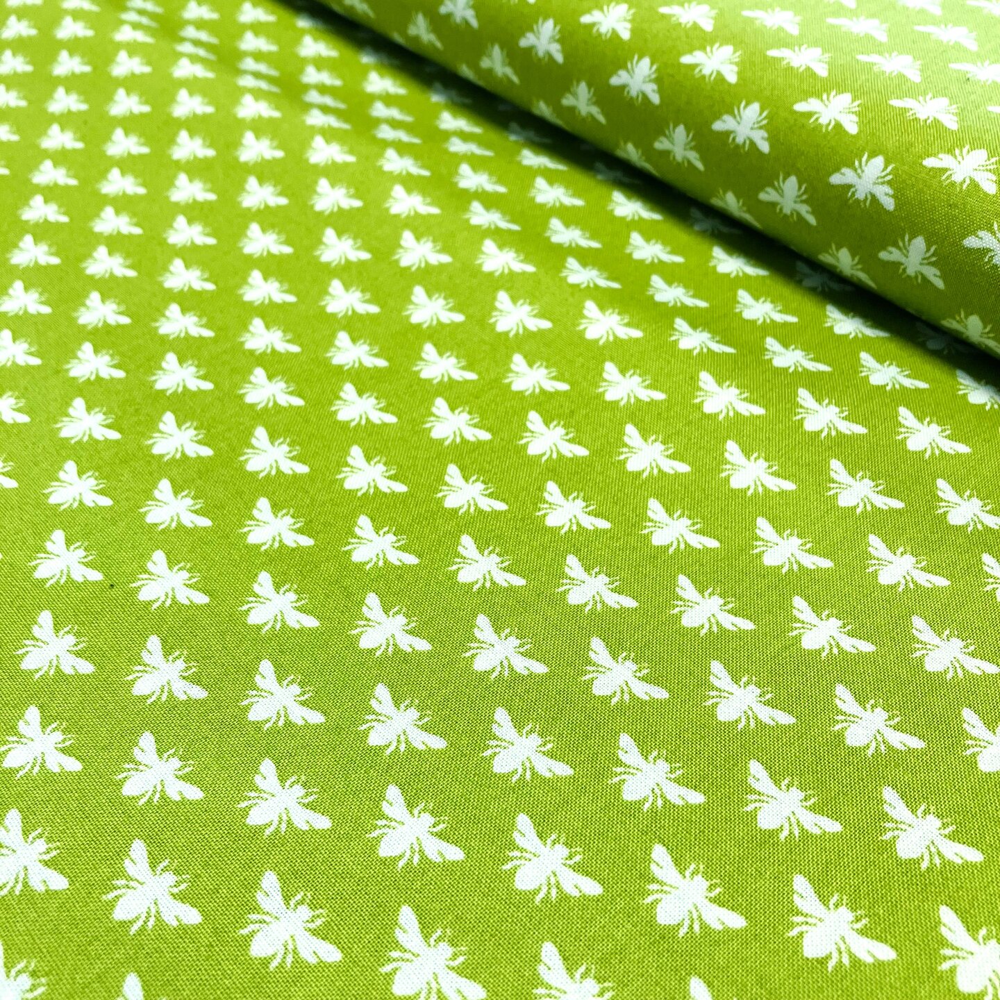 Bavlněná látka Local Honey Small Bees on Green
